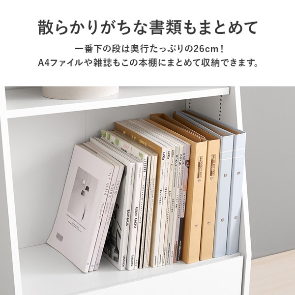 1cmピッチで棚板高さが調節できるハイタイプの大容量本棚。下に行くほど奥行が広くなっており、引出しには日用品の収納もできます。幅60cm配達業者を指定いただくことはできません。北海道/沖縄/離島のお届けに別途中継料金が発生します。※別途送料が発生する場合は後ほどご連絡させていただきます。当店は正規店です。タイミングによっては在庫切れの場合があります。"}
