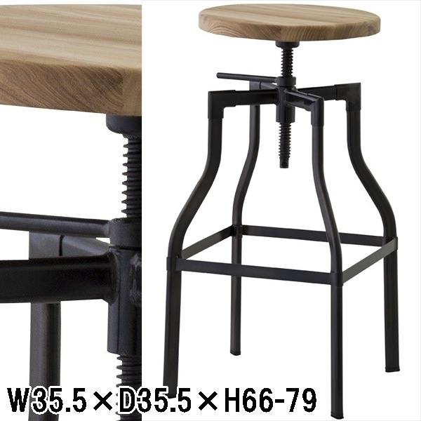ハイスツール カウンタースツール/カフェ風 天然木/昇降式/1脚/幅35.5 高さ66〜79