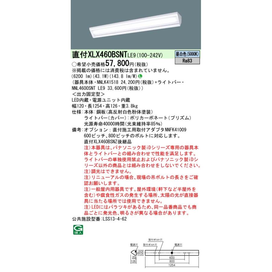 [法人限定] XLX460BSNT LE9 パナソニック iDシリーズ 学校用 天井直付型 40形 一体型LEDベースライト [ XLX460BSNTLE9 ]