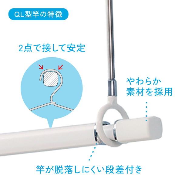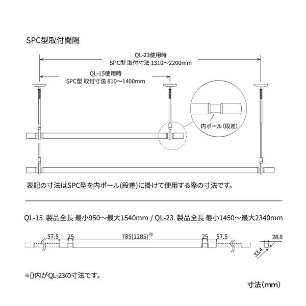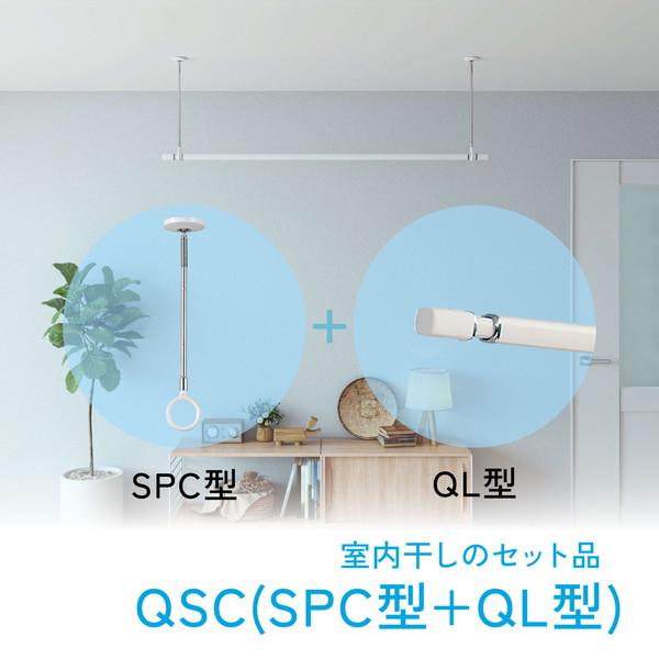 室内干しの決定版セットが登場!インテリアの美観を損ねない、落ち着きのあるブラックとホワイトの2色、ポール3サイズ、竿2サイズ展開でさらに選びやすく。機能はそのままに、使う人、使うシーンに合わせてポール長さの調節や、ポールの着脱ができます。竿部が四角いカタチだから、ハンガーの向きが揃いやすく、風通しの良い状態を保ちやすくし、見た目も美しく干すことができます。重量目安ガイド、天井を守るスプリング機能を採用(ポール)。落下しにくい段差や、先端やわらか素材を採用(竿)。QSCS-15-WはSPC型ショートサイズとQL型15サイズのセット商品です。梱包内容(中箱1箱あたり):SPC型2本 ・竿立てホルダー( STH-1 ) 1個・QL型 1本 ・ポール掛けフック 2個。材質(表面仕上):【内ポール/外ポール(竿)】アルミ押出形材(アルマイト+塗装仕上)/【接続部品(竿)】ABS樹脂(メッキ仕上)/【キャップ(竿)】シリコーンゴム(コーティング仕上)。ご注意事項