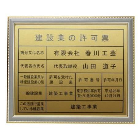 建設業の許可票は春川工芸で。。額入り・建設業の許可票 二層式・建設業の許可票 アクリル製・建設業の許可票 ステンレス製・建設業の許可票 etc 種類豊富。お値段以上。。/建設業許可票 文字入り 法令標識 法令看板★安い 低価格 格安 激安 安価 安値 制作 製作 作成 作製 販売 法定看板 法定業者票 業者看板 業者プレート 業者票 登録看板 登録プレート 登録サイン 許可看板 許可プレート 標識板 標識看板 標識プレート 標識サイン 表示板 表示プレート 表示看板 表示サイン 掲示板 掲示プレート 掲示看板 掲示サイン 認可プレート 認可票 認可看板 看板プレート サイン看板 事務所用 オフィス用 店舗用 プレート看板 プレート標識 割引価格 卸価格 卸値 値引価格 サイン看板 サインプレート 表札 標札★建設業の許可票 額入り・建設業の許可票 二層式・建設業の許可票 アクリル製・建設業の許可票 ステンレス製・建設業の許可票 etc 種類豊富。お値段以上。/建設業許可票■人気商品■シルバー額・建設業の許可票 ゴールド額・建設業の許可票 真鍮製・建設業の許可票 ステンレス製・建設業の許可票 カラー・建設業の許可票"}