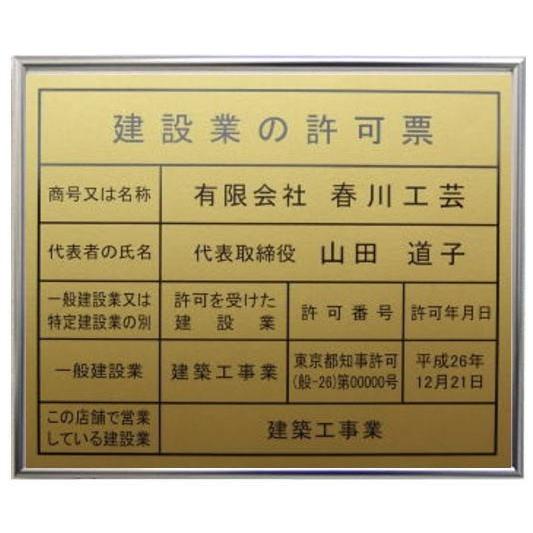 建設業の許可票は春川工芸で。。額入り・建設業の許可票 二層式・建設業の許可票 アクリル製・建設業の許可票 ステンレス製・建設業の許可票 etc 種類豊富。お値段以上。。/建設業許可票 文字入り 法令標識 法令看板★安い 低価格 格安 激安 安価 安値 制作 製作 作成 作製 販売 法定看板 法定業者票 業者看板 業者プレート 業者票 登録看板 登録プレート 登録サイン 許可看板 許可プレート 標識板 標識看板 標識プレート 標識サイン 表示板 表示プレート 表示看板 表示サイン 掲示板 掲示プレート 掲示看板 掲示サイン 認可プレート 認可票 認可看板 看板プレート サイン看板 事務所用 オフィス用 店舗用 プレート看板 プレート標識 割引価格 卸価格 卸値 値引価格 サイン看板 サインプレート 表札 標札★建設業の許可票 額入り・建設業の許可票 二層式・建設業の許可票 アクリル製・建設業の許可票 ステンレス製・建設業の許可票 etc 種類豊富。お値段以上。/建設業許可票■人気商品■シルバー額・建設業の許可票 ゴールド額・建設業の許可票 真鍮製・建設業の許可票 ステンレス製・建設業の許可票 カラー・建設業の許可票"}