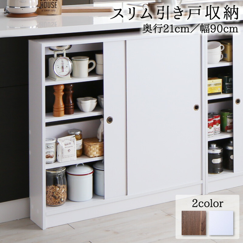 幅90 奥行21 スリム 本棚 引き戸収納 キャビネット 北欧 シェルフ 絵本棚 薄型 モダン 大容量 棚 木製 ウッドラック 収納 ラック チェスト キッチン収納