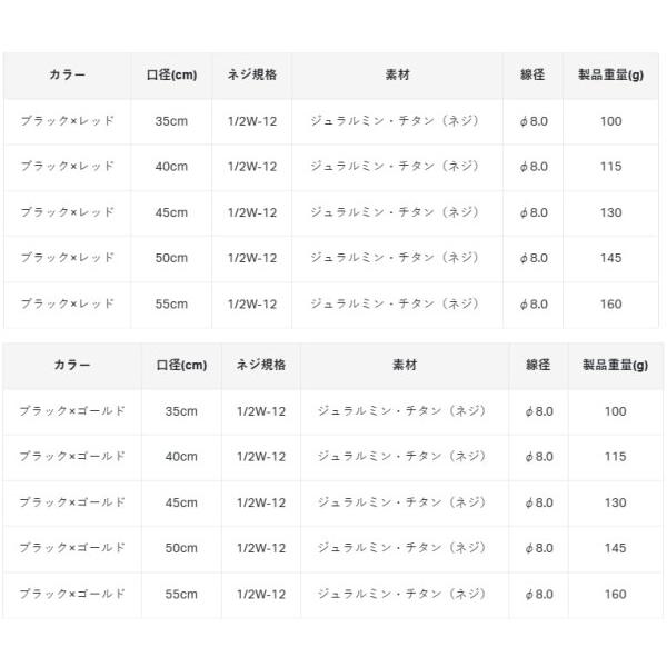 がまかつ(Gamakatsu) G タモ枠(四折リジュラルミン) GM835 ブラック/レッド 40cm商品コード:16067051877サイズ:40cmカラー:ブラック/レッドサイズ:40cmカラー:ブラック/レッド素材:〈本体〉ジュラルミン〈ネジ〉チタン日本製説明アルミニウム合金最高の強度を誇るジュラルミンを採用。線径[ファイ]8mmの中空により、チタンに匹敵する強さと軽さを併せ持っています。アルミ、ジュラルミン専用潤滑剤を使用してください。