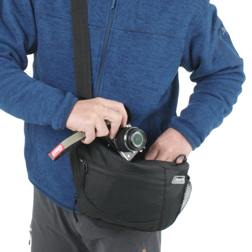 | Coleman カメラショルダーバッグ(ブラック) Colemanとのコラボレーションで誕生した、スタイリッシュなカメラバッグ。伝統のアウトドアブランド・コールマンの名を冠したワンショルダータイプの超軽量カメラバッグ。クッションボックスを外せば、普段使いのバッグとしてもそのまま使え、サイドのジッパーにより収納スペースの拡張も。 |