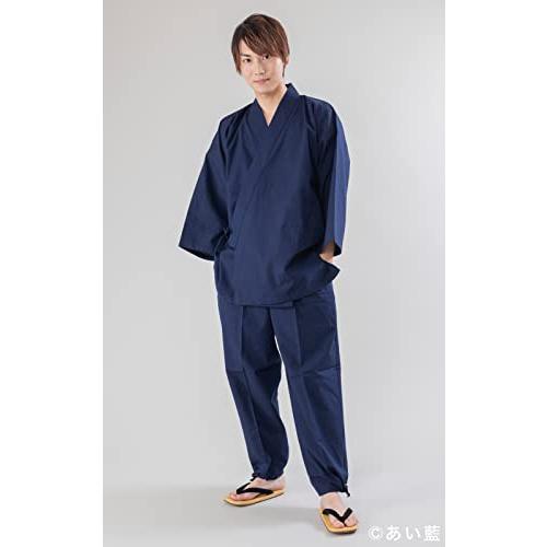 あい藍 作務衣 久留米織り つむぎ無地 M〜3Lサイズ (L 濃紺)