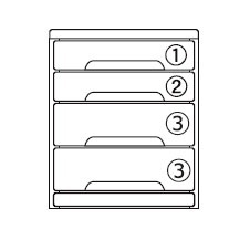 引出し内寸:(1)幅25.5×奥行30×深さ4.5cm、(2)幅25.5×奥行30×深さ3.5cm、(3)幅25.5×奥行30×深さ7cm