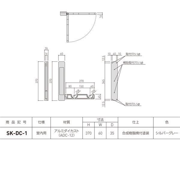 /室内用 物干し金物 〔横付型 左右1組〕 高さ370mm×幅60mm×奥行35mm 〔リビング ダイニング〕/