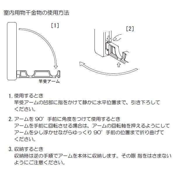 使用しない時は、物干アームを本体に収納できますので、目立たず、スマートな印象を与えます。取付方向に対して、左右に90°回転しますので、サッシ回り、壁等取付場所を選びません。