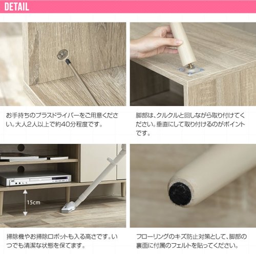 | 備考 | 【梱包サイズ】117cm×42cm×14cm 【商品重量】約17.5kg 【耐荷重】天板 約25kg、中板 約4kg、底板 約5kg ※プラスドライバーをご用意ください ※組立時間:2人以上で約40分 【ORG】 |