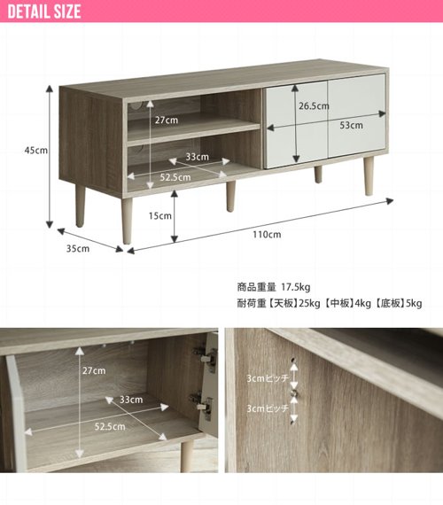 | サイズ | 幅110cm×奥行35cm×高さ45cm 梱包サイズ:117cm×42cm×14cm |