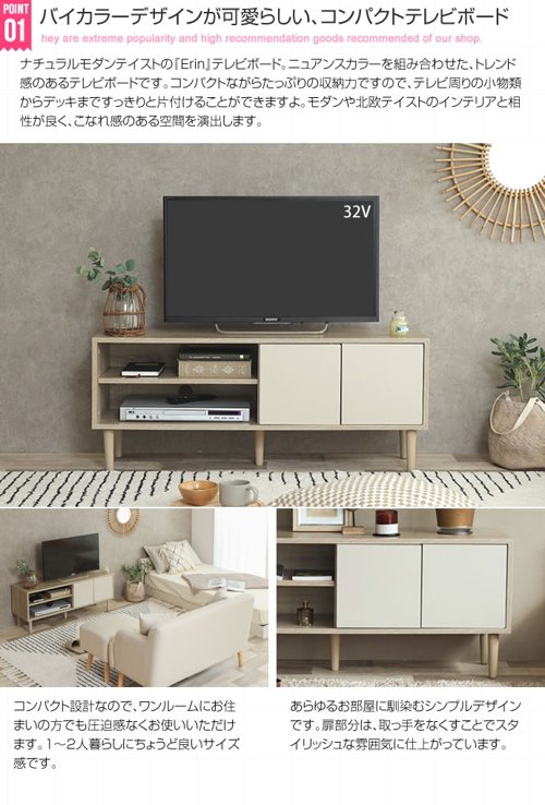 テレビ台 32インチ 42型 まで推奨 ロータイプ おしゃれ 白 幅110 木製 収納 棚 脚付き 北欧 テレビボード TV台 バイカラー 38v 40v 新生活 Erin ID003