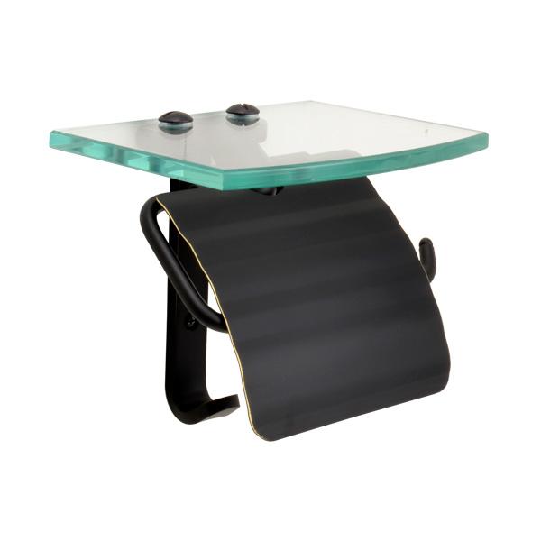 真鍮 ペーパーホルダー(ガラスシェルフ付)シングル 黒色 アンティーク ブラス 雑貨 [640719] ゴーリキアイランド