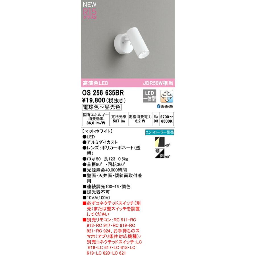 【決済・後払い決済】 高演色LED JDR50W相当 OS256635BR 電球色〜昼光色 2700〜6500K 消費電力6.2W Ra93 【マットホワイト】 ●LED ●ルミダイカスト●レンズ:ポリカーボネート(透明) ●巾φ50 長123 0.5kg ■光源寿命40,000時間 ■壁面・天井面・傾斜面取付兼用 ■連続調光100-1%・調色 ■調光器 ■必ずコネクテッドスイッチ(別売)または壁スイッチを設置してください ■リモコン別売:別売BT調光・調色リモコン居室CL以外用+別売コネクテッドスイッチ リモコン別売 90° 傾斜天井対応 その他 タスク_ワイドメーカーへのお問い合わせはコチラ →
