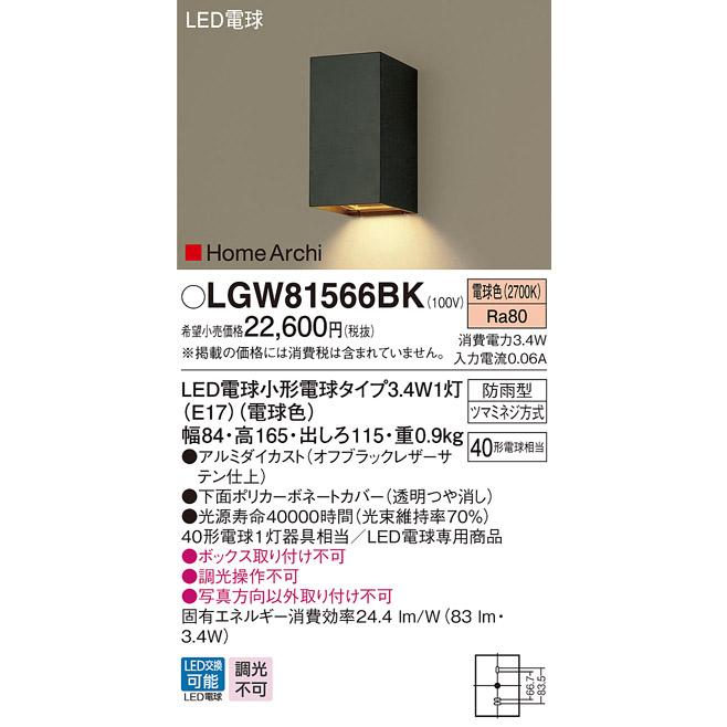 (手配品) LEDポーチライト40形電球色 LGW81566BK パナソニック