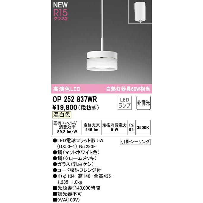 オーデリック ペンダントライト 【OP252837WR】【OP 252 837WR】 ペンダントライト【決済・後払い決済】【純正品】