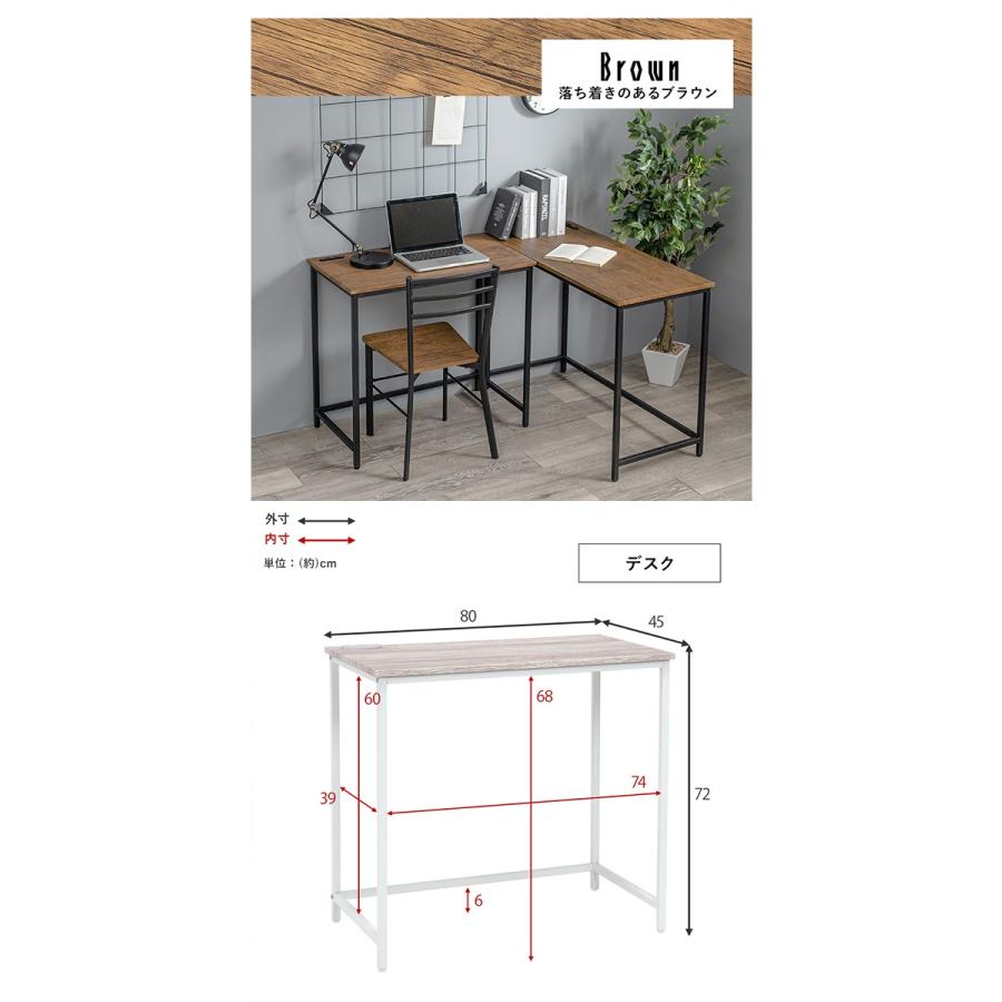 2種類のサイズのデスクとチェアの3点セット。コーナーデスクとして使ったり、別の部屋で使ったりとレイアウトを変えられます。カラーバリエーションは、●ブラウン(4934257292672/LDC-4697BR-TS) ●ホワイト(4934257292894/LDC-4697WH-TS)です。
