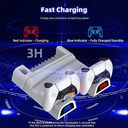 ・ホワイト PS5 CON STAND 0595SET-05100WHT・効率的な冷却システム下向きに設計されたNexiGo縦置きクーリングスタンドの冷却システムは、PlayStation 5に内蔵する冷却システムをさらに強化。冷却ファンのスピードは、低速、中速、高速の3段階に調節が可能です。それぞれ、緑、オレンジ、赤のインジケーターライトが点灯します。・デュアルコントローラーチャージャー付属の5V/3Aアダプターを使用して、DualSenseコントローラー2台を3時間以内にフル充電できます。充電ドックにはインジケーターライトを搭載し、充電中は赤に、スタンバイモードまたは充電が完了すると青に点灯します。注意:コンセントから電力を供給する際は、付属の5V/3A電源アダプターのみを使用してください。他の充電器では、充電不良が生じたり、充電時間が長引いたりする恐れがあります・オールインワンデザインPS5の両方のバージョンに対応する本スタンドは、本体稼働時の熱を抑え、パフォーマンスを向上させ、ゲーム機の寿命を延ばすことができます。・省スペースデザインゲーム