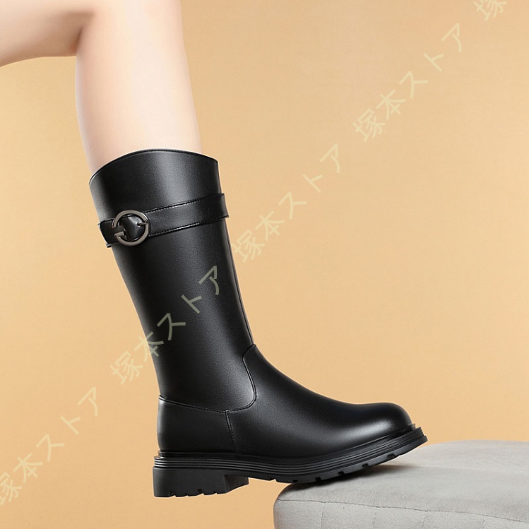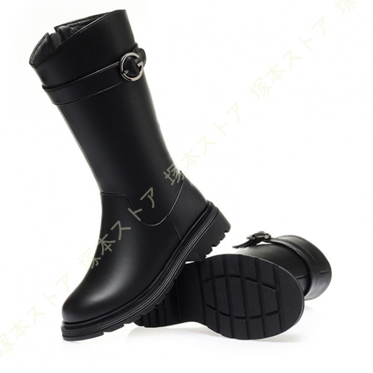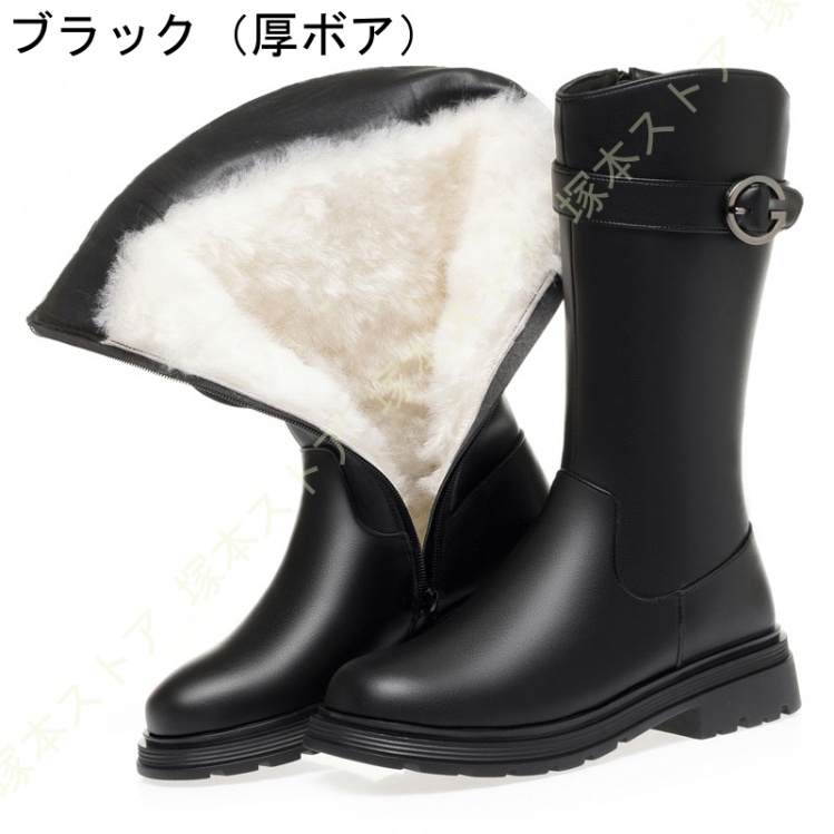 素材:牛革 筒丈: 約26.5cm 履き口: 約36.5cm ヒールの高さ:約4cm機能:保温 、暖かく、耐水性、滑り止めサイズ:22.5cm(35)/ 23cm(36)/ 23.5cm(37) / 24cm(38)/ 24.5cm(39)/ 25cm(40)/ 25.5cm(41)/ 26cm(42)/ 26.5cm(43)軽く、暖かく、カジュアルなデザインは、ファッション性も高いため寒さが厳しい時期にはピッタリなブーツです。内側には柔らかなボア素材を採用しているため、保温性が良いです。厳冬になってもお客様の両足を寒気から守ります。ゴム滑り止め底、靴底の模様は特殊なデザインを使用しているため、滑り止めの効果を補強します。雨や雪などの濡れた地面で歩行をサポートして安心で歩行できる。秋冬の外出・デーリー着用としても適用し、通勤・通学・ウォーキング・スノートレーニング・旅行・アウトドア活動・スキー場の遊びなどでも適応。"}