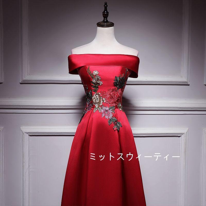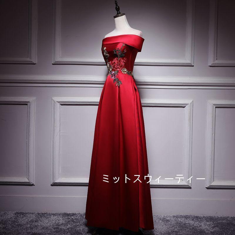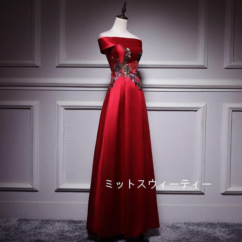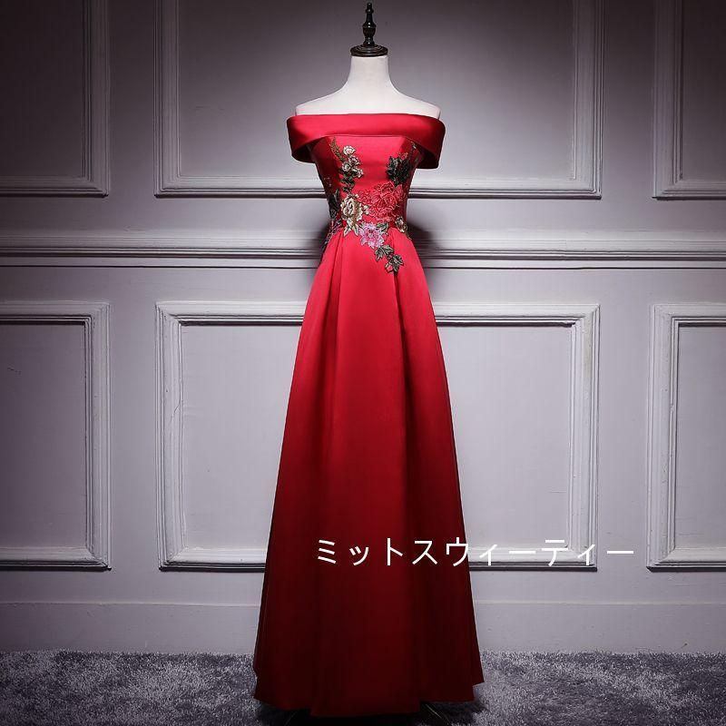Aラインドレス ロング カラードレス 安い カクテルドレス 演奏会 結婚式 イブニングドレス 二次会 披露宴 フォーマルドレス 発表会 ウエディングドレス 赤