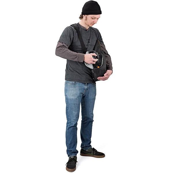 - スリングショットエッジは、背中から正面に回すだけですぐにカメラが取り出せるスリング型のカメラバッグです。素早く機材へのアクセスが可能で撮影したい瞬間を逃しません。パッドの入った背面とスリングストラップで、安定かつ快適に背負えるカメラバッグです。