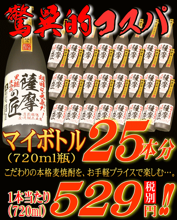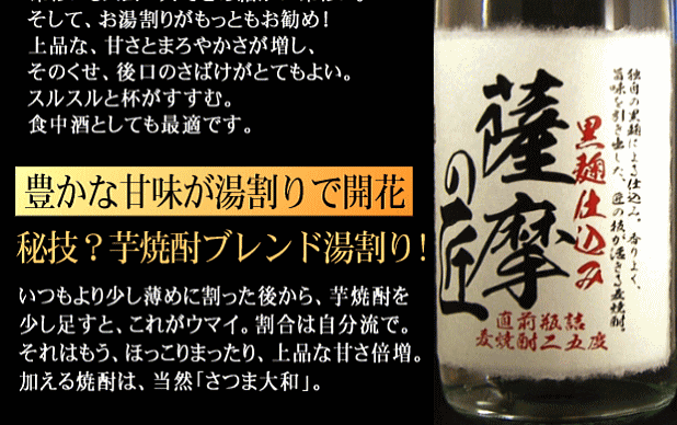 黒麹仕込み甕仕上げ 薩摩の匠 大人買い 18リットル 税別13222円のお値打ち価格!