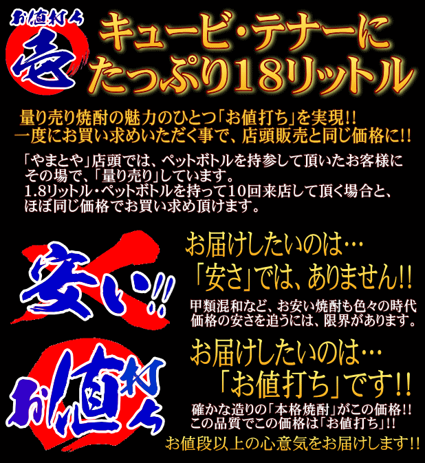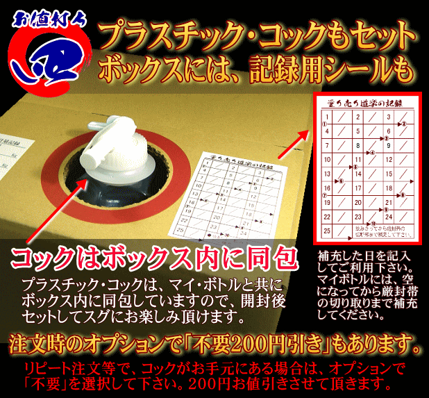 18リットル大人買いで、720ml当たり529円。さらにマイボトル、コックもついて、粋な大人の焼酎道楽をお楽しみ頂けます。サイズは一辺30cmの立方体。"}