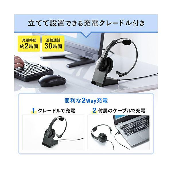 /サンワサプライ クレードル付きBluetoothヘッドセット(通話用ノイズキャンセル機能搭載) ブラック MM-BTMH59BK 1個/