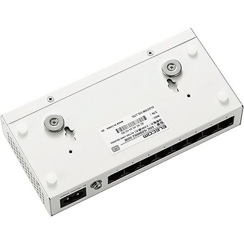 メーカー:エレコム 品番:EHC-G08MN2-HJW メタル筐体電源内蔵ギガビットスイッチングハブ <パッケージ><インターフェース部><底面にマグネットを装備>●ファンレスで耐熱50℃に対応し、ループ検知機能も搭載した1000BASE-T対応の電源内蔵メタル筐体8ポートハブの3台セット、本体色はホワイトです。