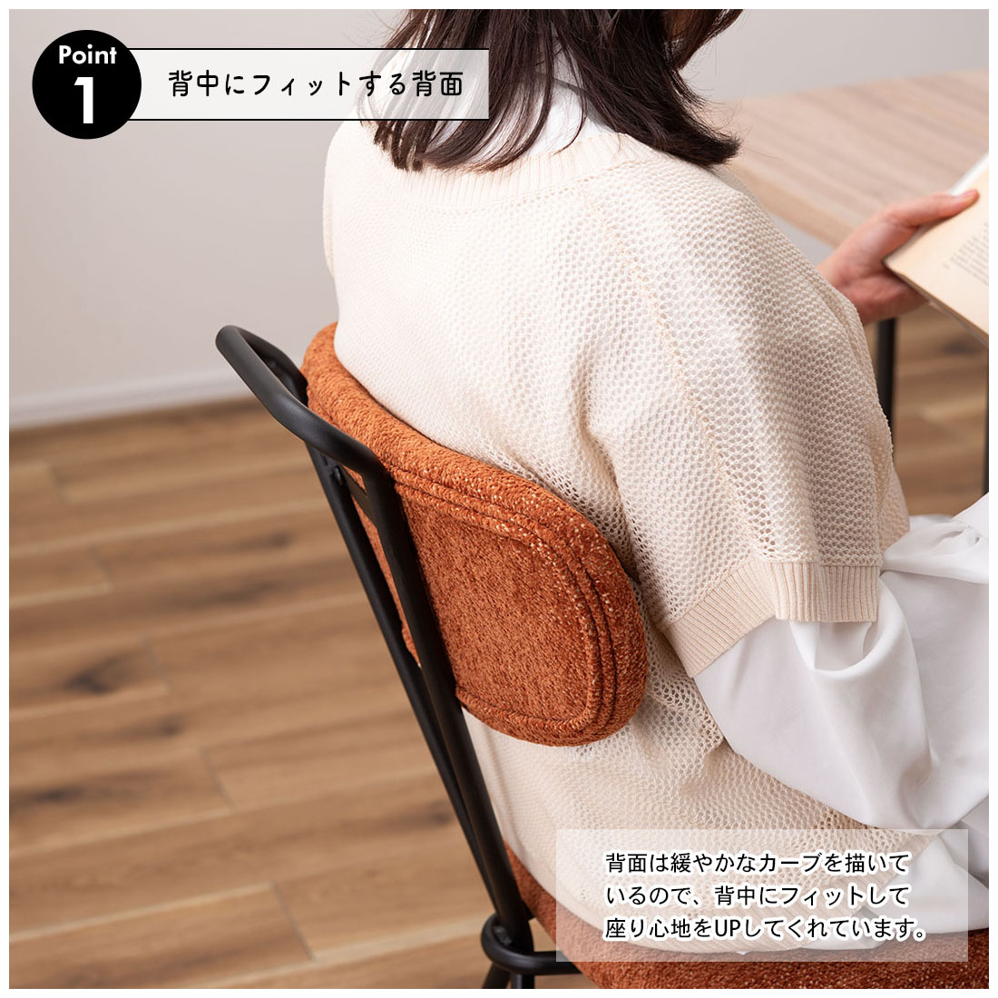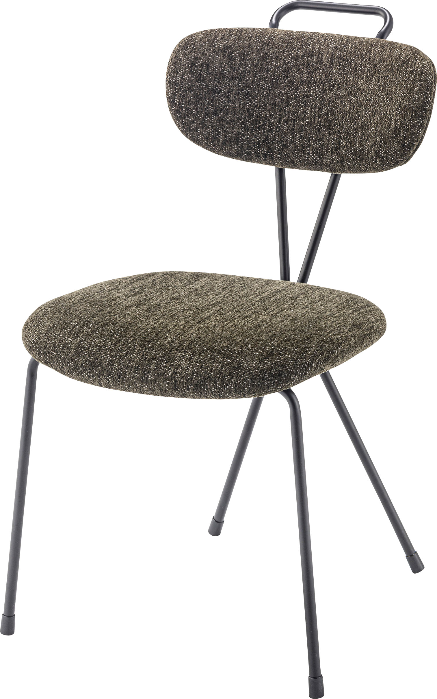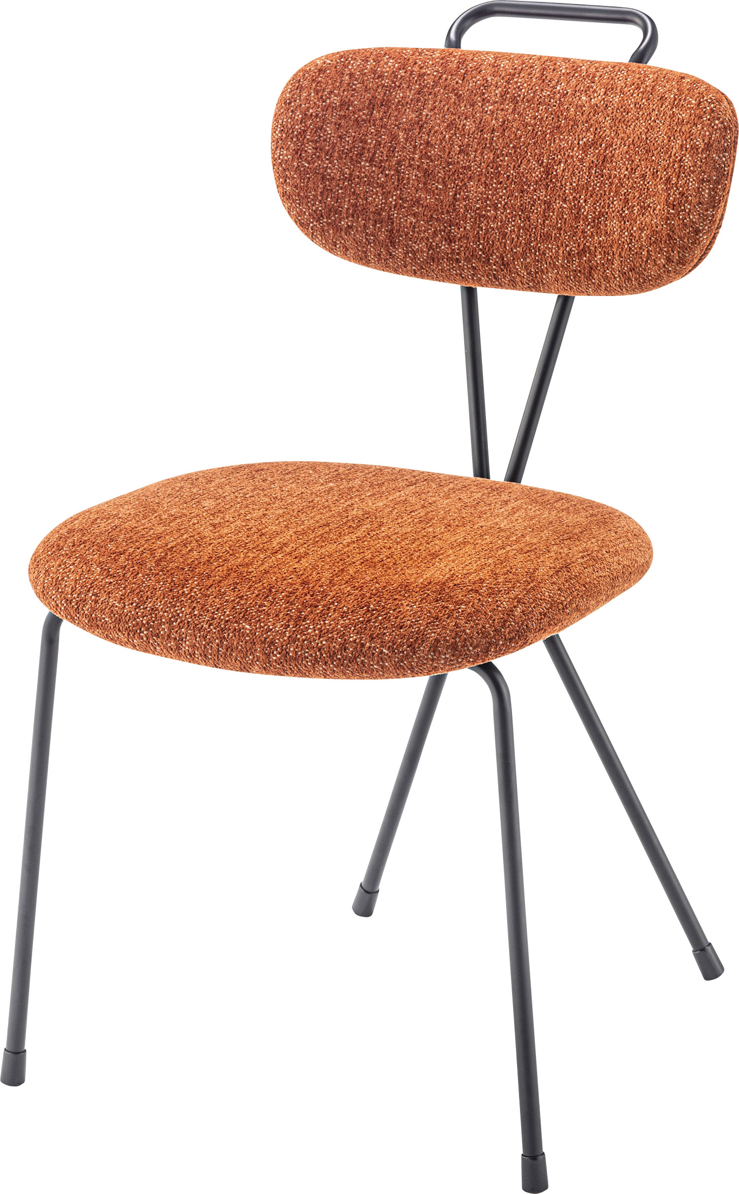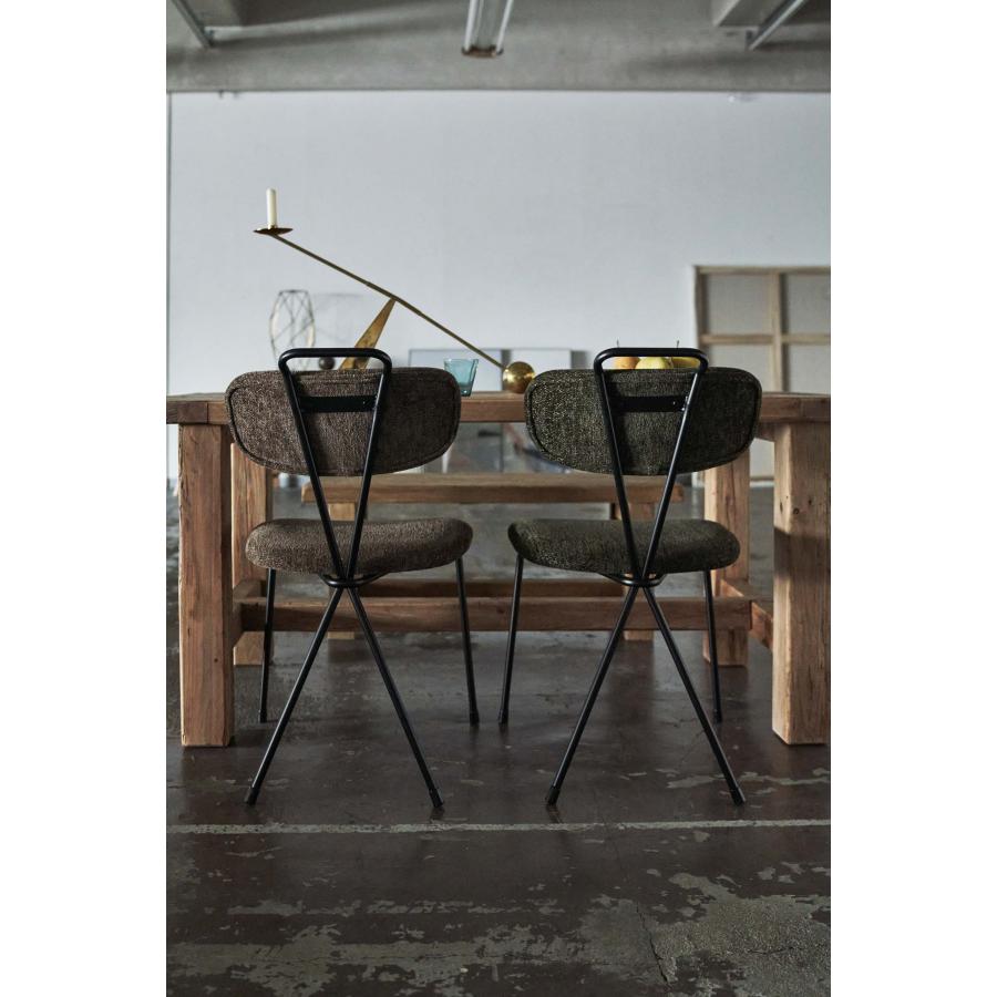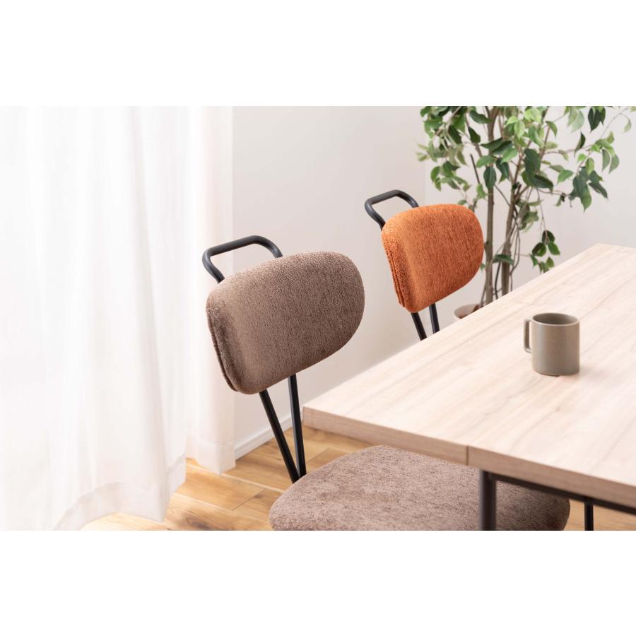 ●デザイン性の高い斬新なフォルムのチェア。●背面のクロスが特徴的でどの角度から見ても無駄のないシンプルなスタイルのアクロス。●あたたかみのある生地とインテリアになじみやすいカラーで様々なテイストに合わせることができます。●背中にフィットする背面。緩やかなカーブを描いているので、背中にフィットして座り心地をUP。●引き出しやすい背面の取っ手。背面のスチール部分は取っ手の役割も。チェアを引き出しやすくしてくれています。●脚先には保護キャップが付いているので、床を傷つける心配も少なく安心。●背面の脚部は、背面と繋がった斬新なフォルムをしており、唯一無二のデザインとなっています。商品サイズ:約幅49×奥行61×高さ82×座面高45.5cm商品重量:約5.5kg材質:スチール(粉体塗装)/ポリエステル生産国:中国備考:組立式"}