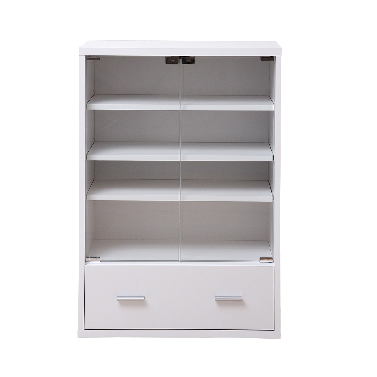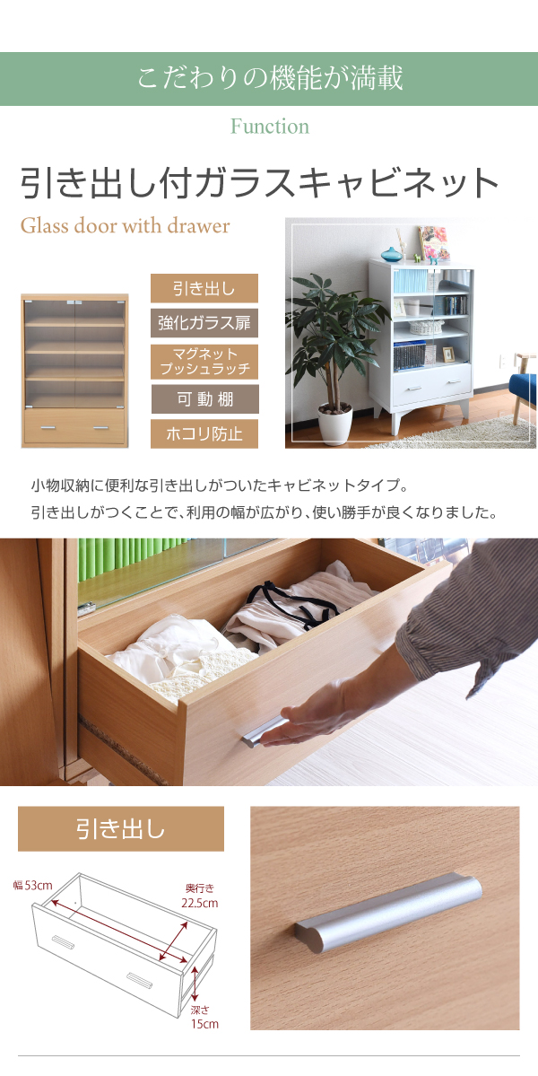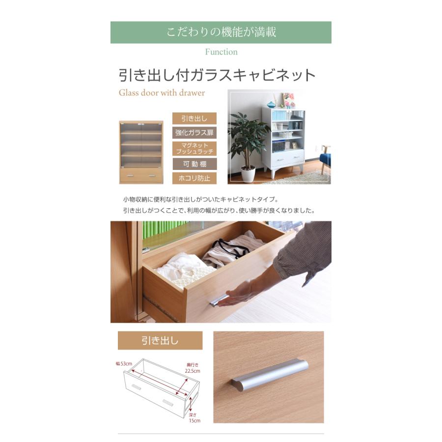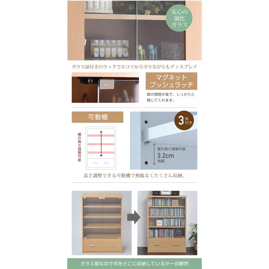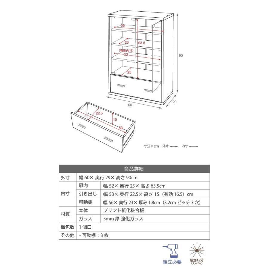 ガラスキャビネット ディスプレイラック 本棚 食器棚 扉付き 薄型 おしゃれ スリム 5段 木製 ガラス ロータイプ 収納 幅60 引き出し コンパクト 2色対応