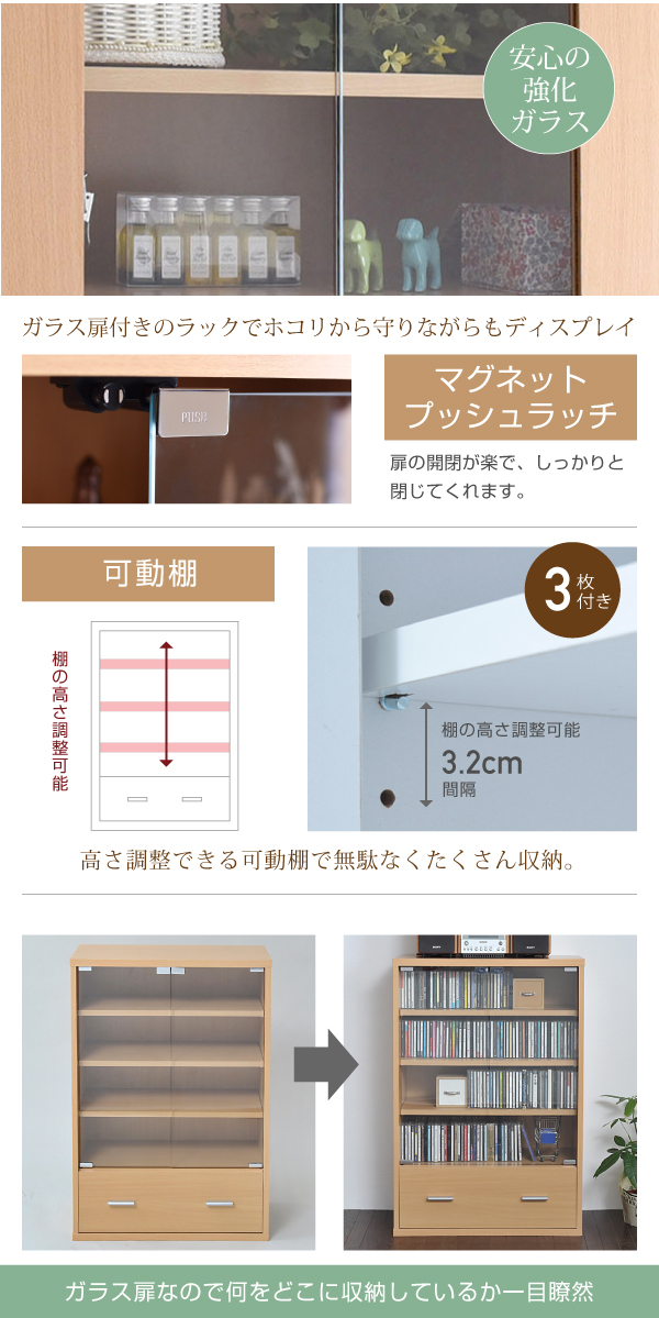 ※こちらの商品はお客様組み立てとなります。※組み立て方や若干の個体差によって、表記サイズと完成形のサイズに多少の誤差が生じる場合がございます。■サイズ全体:W60 x D29 x H90cm■材質本体:プリント紙化粧合板ガラス:5mm厚 強化ガラス■カラーナチュラル・ホワイト■送料関東〜九州:送料無料東北:480円北海道:980円沖縄・離島:別途お見積もり◯大型商品となります。搬入経路の確認をお願いいたします。※お部屋に搬入できないなどの理由でのキャンセルはお受けしておりません。※商品出荷後のキャンセルはできかねます。ご了承ください。※お届けまで、出荷から7-10日ほどお時間をいただいており、配送に曜日制限がある場合もございます。(地域や時期によりましては2週間以上かかる場合がございます。)※時間指定は出来かねます。