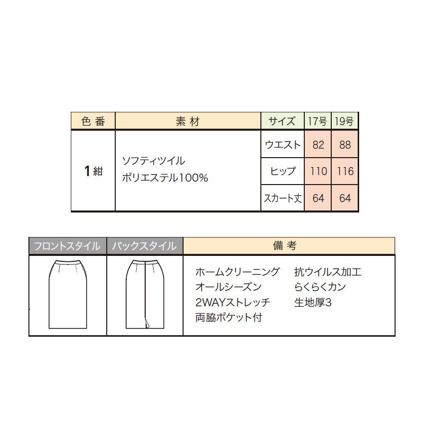 アンジョア スカート 62cm丈 52025 抗ウイルス加工 伸びるウエスト 17号-19号 オールシーズン オフィス 事務服 制服 ユニフォーム en joie
