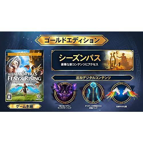 ・PlatformForDisplay:ゴールドエディションEdition:無し・『アサシン クリード オデッセイ』のクリエイター陣が手掛けるファンタジー巨編・『イモータルズ フィニクス ライジング』は、壮大な神話の冒険を楽しめる新たなタイトルです。・神々の力を借りて、怪物に立ち向かえギリシャの神々を救う英雄となれ 『アサシン クリード オデッセイ』のクリエイター陣が手掛けるファンタジー巨編 『イモータルズ フィニクス ライジング』は、壮大な神話の冒険を楽しめる新たなタイトルです。 プレイヤーは、ギリシャの神々と彼らの土地を呪いから救うため、翼を持った主人公フィニクスとして冒険します。 神々の伝説の力を習得し、迫りくる試練を乗り越え、ギリシャ神話の中でも最も危険とされるテュポンをはじめとする、 神話上のモンスター達を倒しましょう。 神々の力を借りて、怪物に立ち向かえ 本作は、ワクワクするような冒険、空中戦や近接戦闘によるダイナミックなアクション、ギリシャ神話がベースとなった物語が特徴です。 プレイヤーは、サイクロプス、ミノタウロス、メデューサといった巨大なモンスターたちと戦うことができます。 アキレスの剣、オデュッセウスの弓、ダイダロスの翼など神々の力を借りて、 プレイヤーは、巨大な敵との戦いを切り抜けていきます。 戦闘に加え、プレイヤーの頭脳と戦略も、小さな独立したものから、巨大なタルタロスの迷宮まで、 この世界の様々なパズルを解くためには欠かせません。 神々を救う英雄となるため、様々な試練を乗り越えろ 『イモータルズ フィニクス ライジング』は、アクションとアイディアが試される、アクションアドベンチャーです。 広大なオープンワールドでは、山々を登り、空を滑空し、ギリシャ神話の神々の住む7つの区域に隠された秘密をすべて見つけましょう。 また、神々の広間では、プレイヤーは、フィニクスのライフやスタミナをアップグレードすることができます。 フィニクス自身の強化に加え、武器、アーマー、秘薬、敵を倒したり、フィールド上の宝箱から入手したりするアイテムで強化が可能です。 プレイヤーは、一筋縄ではいかないこの冒険を通して偉大なる英雄への道を歩むのです。 権利表記 (C)2020 Ubisoft Entertainment. All Rights Reserved. Immortals Fenyx Rising Ubisoft and the Ubisoft logo are registered or unregistered trademarks of Ubisoft Entertainment in the US and/or other countries. 型番 : PLJM-16755