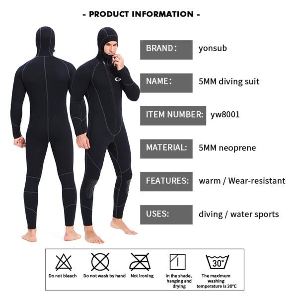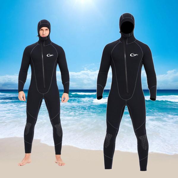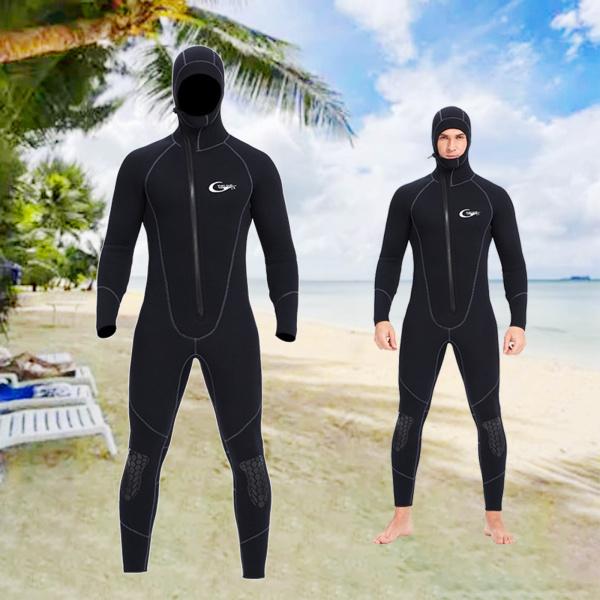 メンズウェットスーツ、全身フード付きネオプレン5mm長袖スキューバダイビングスーツ、カヤックサーフィンウォータースポーツ用の保温ウェットスー