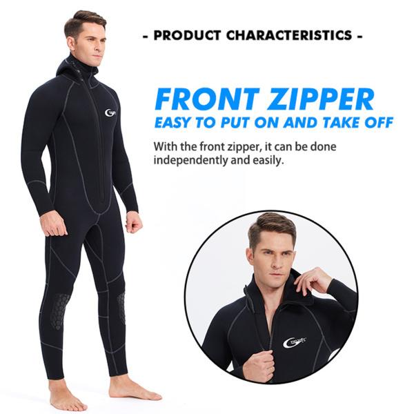頑丈なフード付きフロントジッパーメンズウェットスーツは.出入りが簡単です.フラットロックステッチシームは.優れた耐久性と素晴らしい快適さで.最も寒い状況でも体を暖かく保ちます.