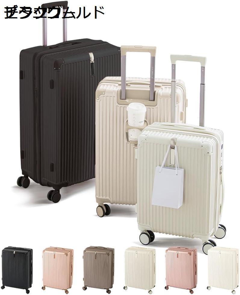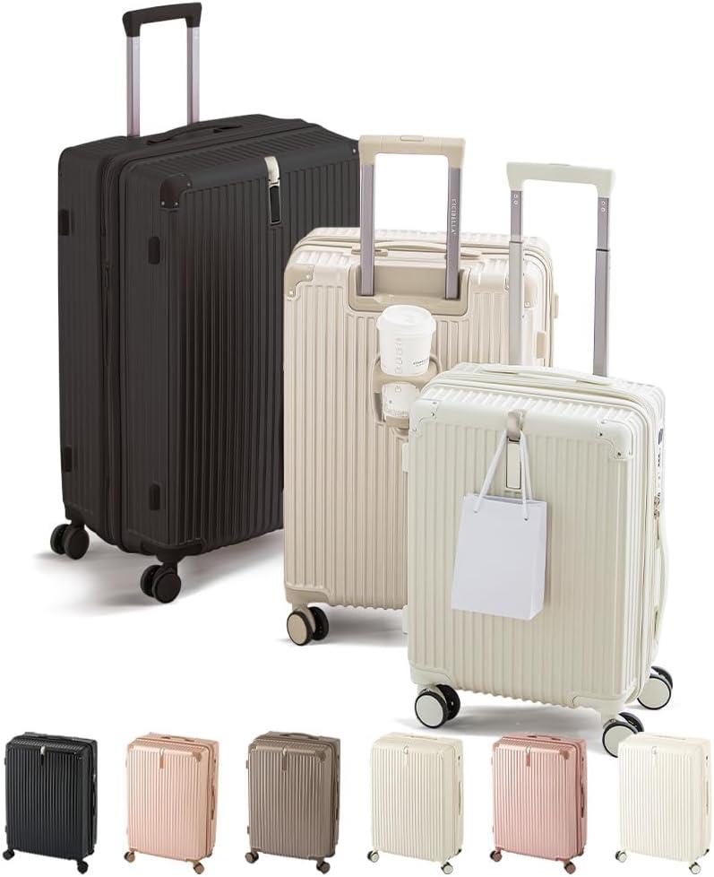キャリーケース【2024静音キャスター採用・摩擦に強いコーディング仕上げ】 スーツケース【usbポート・カップホルダー付き】 おしゃれ S