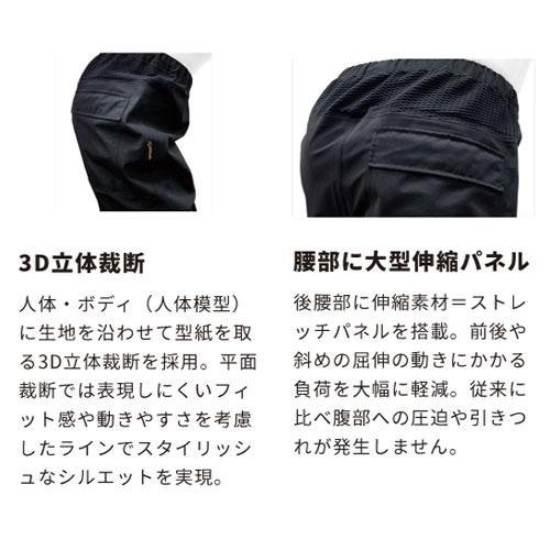 - 3D立体裁断、腰部に大型伸縮パネル
