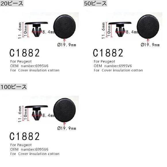 automobile motorcar オートモービル モーターカー カー 車 自動車 車両 プジョー PEUGEOT 100個【ピース】 100ピース インテリア クリップ カバー 絶縁 コットン ファスナー 適用: プジョー/PEUGEOT 6995V6"}