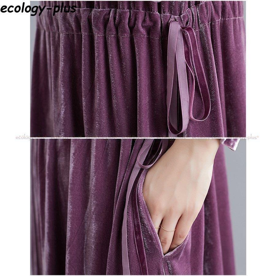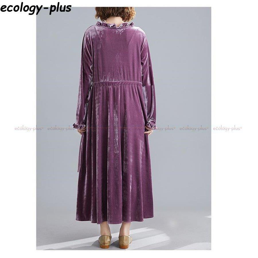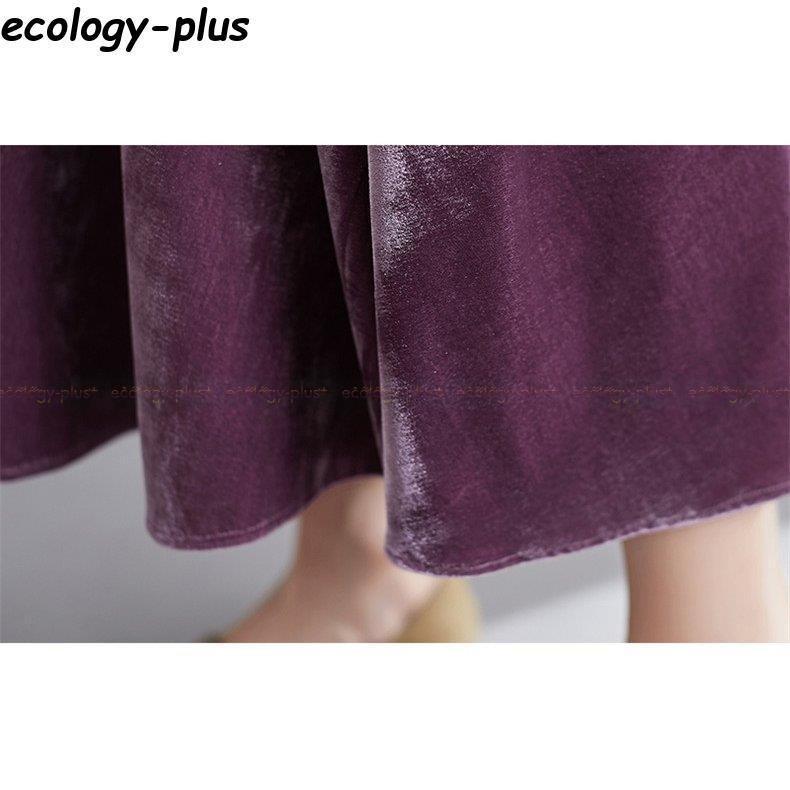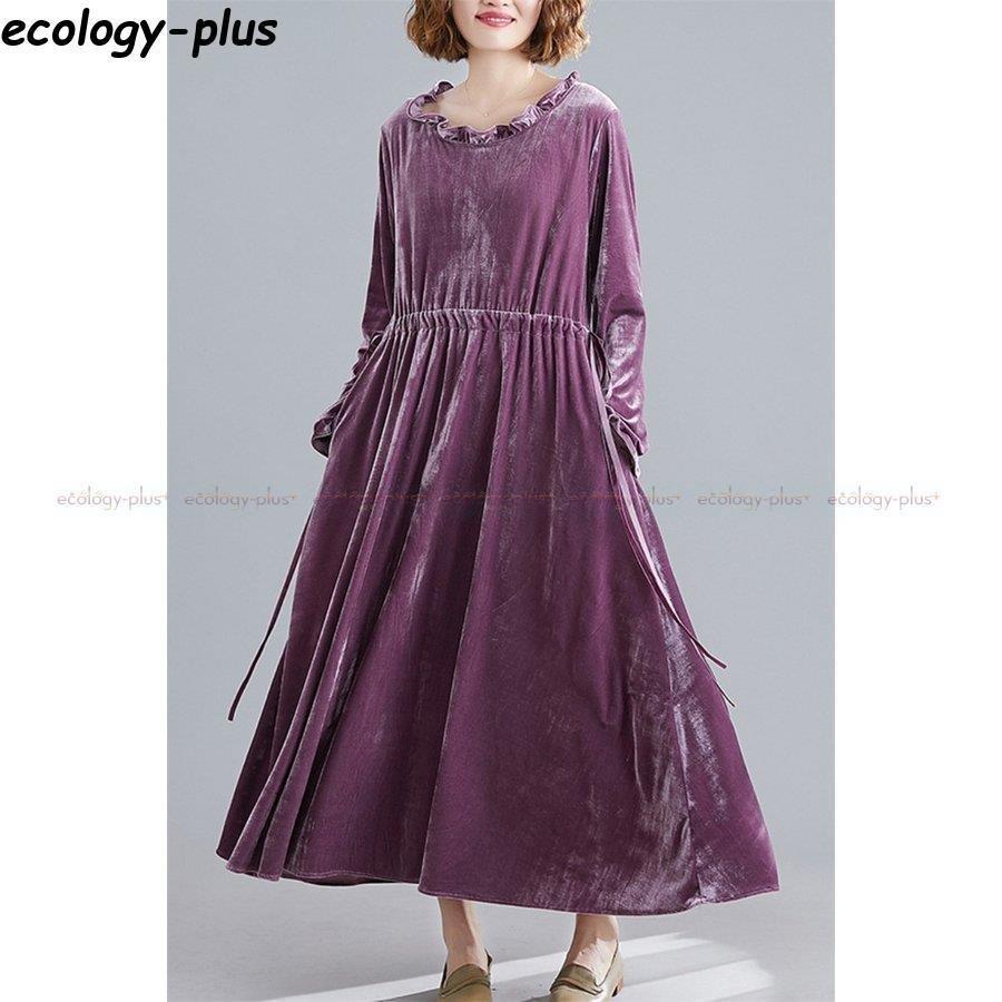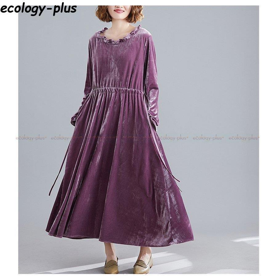 ロングワンピース レディース ベルベットワンピ Aライン 着痩せ きれいめ 無地 上品 大人 二次会 春秋コーデ 30代40代 ゆったりめシルエット