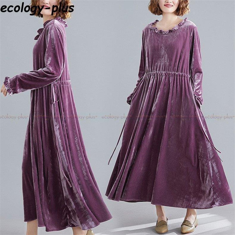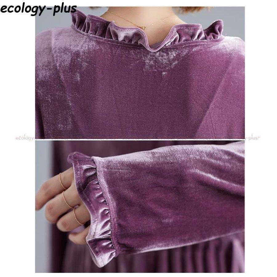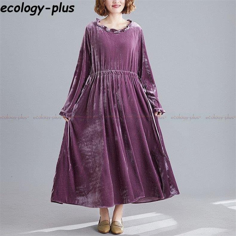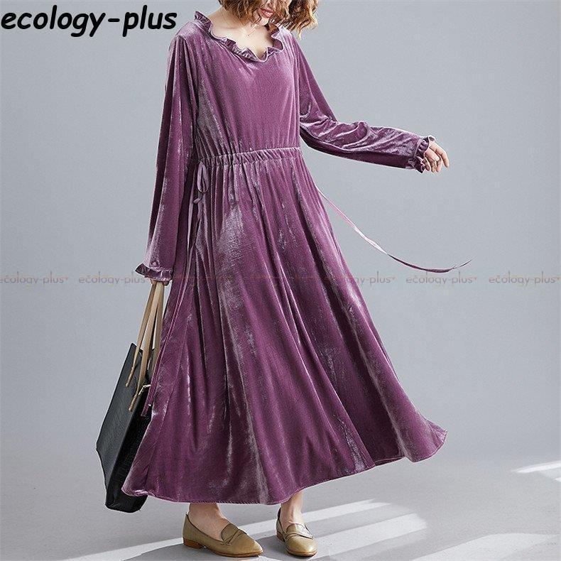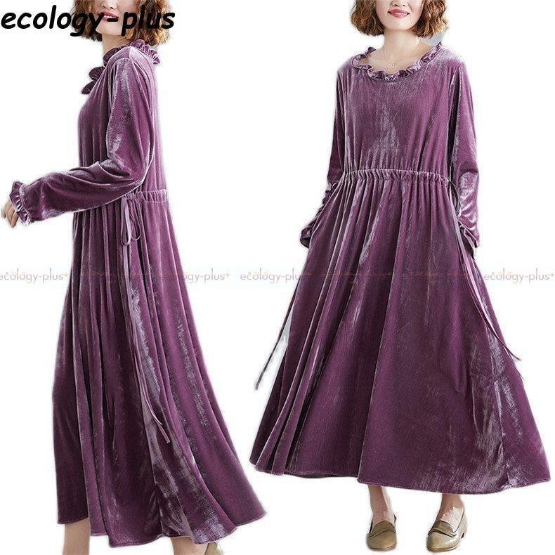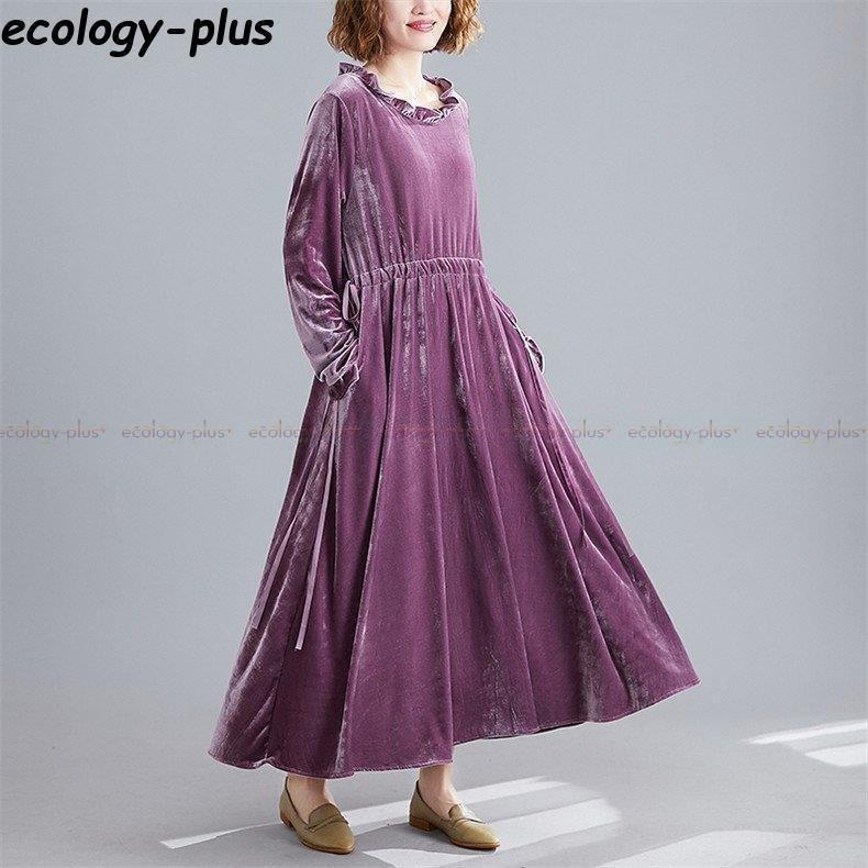 ロングワンピース レディース ベルベットワンピ Aライン 着痩せ きれいめ 無地 上品 大人 二次会 春秋コーデ 30代40代 ゆったりめシルエット