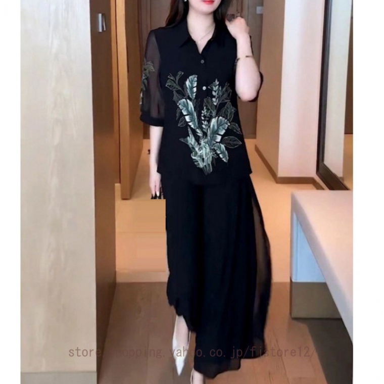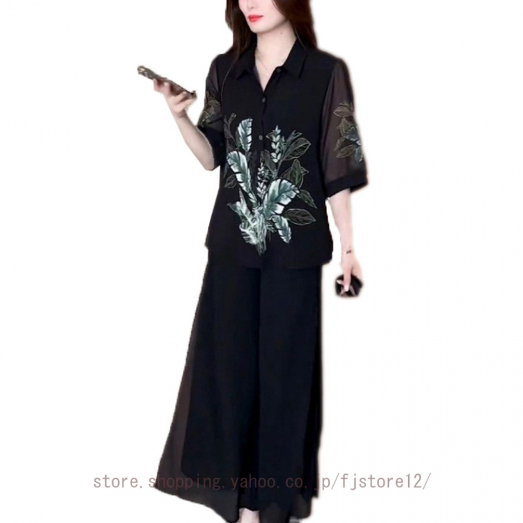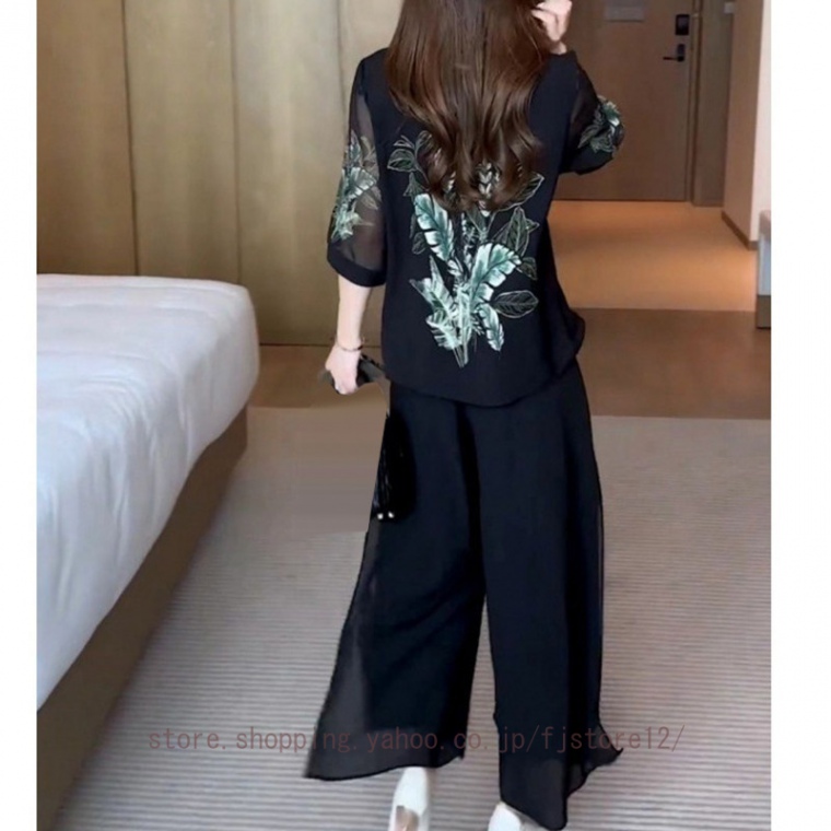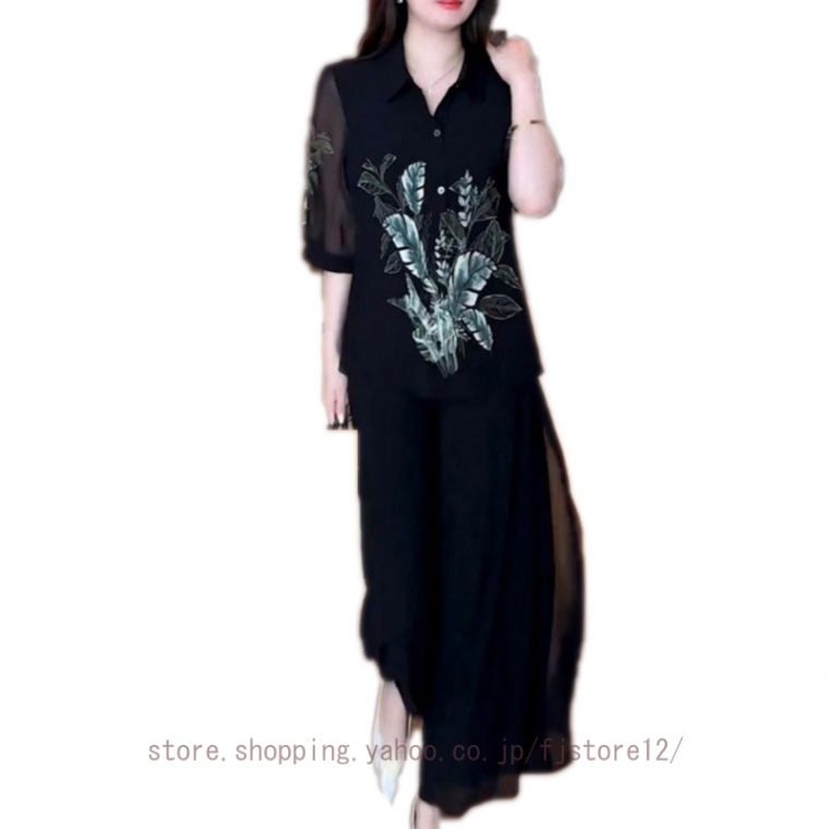 レディース パンツドレス おしゃれ セットアップ パンツスーツ 夏 2点セット フリル トップス 上下セット 落ち感 ゆったり 体型カバー 着痩せ お洒落 無地