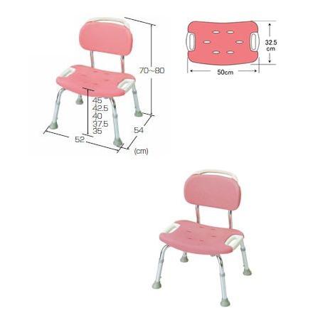 ・やわらか快適座面でお尻の痩せた方や長時間使用の負担をやわらげます。ソフトパッドにEVA樹脂(発砲素材)を採用しているので、痛みや冷たさを緩和します。・持ち手付きで持ち運びに便利です。・握り部があり立ち座り時に体を支えやすく、負担を緩和します。・高さが体格に合わせて調節できます。・ゴム脚で床面をしっかりとらえる形状で安定感があります。・らくらくお手入れでソフトパッドは裏の突起を押すだけで簡単に外して洗うことができます。■主な仕様●サイズ 本体:幅52×奥行54 ×高さ70〜80cm 座面高:35・37.5・40・42.5・45cm (5段階/2.5cm)●商品重量 約3.5kg●材質 座面・背もたれ:ポリエチレン ソフト座面・背もたれ:EVA樹脂 脚:アルミ ゴム脚:合成ゴム●最大使用者体重:100kg●色調 ピンク:49341 グリーン:49346(廃番となりました) (シャワーベンチ 浴室用いす 浴室用椅子 敬老 敬老の日 ギフト プレゼント 母の日 父の日 浴室 お風呂 柔らかい座面 やわらかい 柔らかい ソフト 高さ調整 背付き 背付 ワイド)