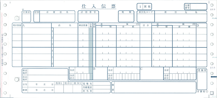 | 複写枚数 | 6枚 1〜4枚目:仕入伝票 5〜6枚目:納品伝票 |