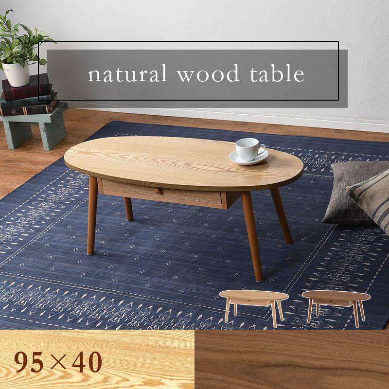 ローテーブル おしゃれ 楕円形 幅95 引き出し付き 木製
