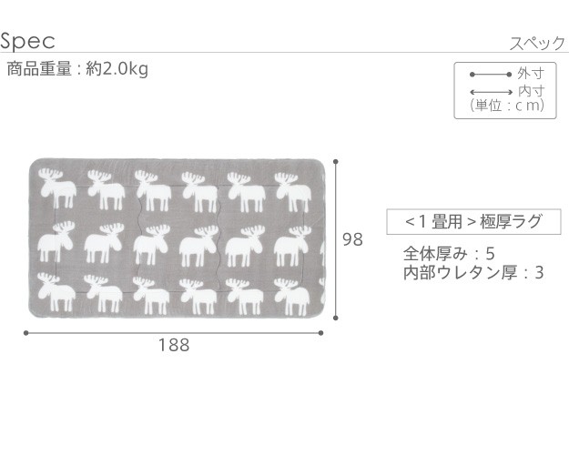 ※メーカー直送のためはお受けできません。※沖縄・一部離島は別途送料がかかります。お見積もりいたしますのでお問い合わせ下さい。【カラーバリエーション】ブラウン・エルク_グレー【仕様】表地:ポリエステル100% フランネル(はっ水加工)裏地:ポリエステル100%内部:ウレタンアルミシート付き【サイズ】幅188x奥行98x厚み5cm重量:約2kg内部ウレタン:厚み3cm株式会社ナカムラ(21101718)"}