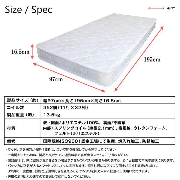 圧縮梱包 ロールボンネルコイルマットレス/寝具 〔シングル〕 幅97cm×長さ195cm×高さ16.5cm 強度 耐久性 クッション性抜群〔〕
