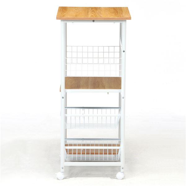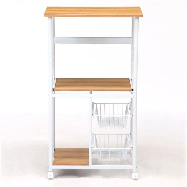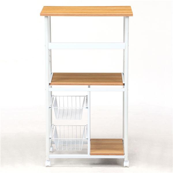 レンジ台 キッチン収納 幅60×奥行46×高さ103.5cm ホワイト×ナチュラル キャスター付き スチール 組立品 リビング 台所〔〕