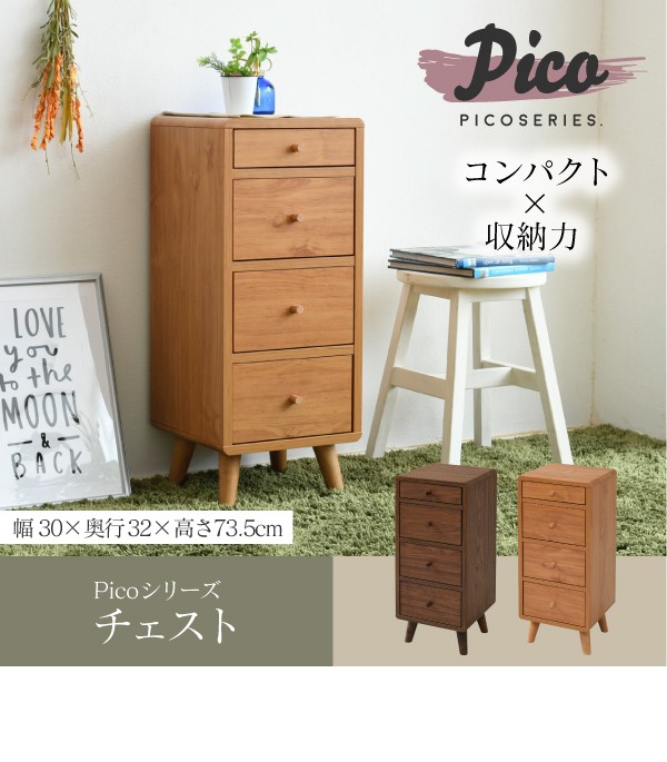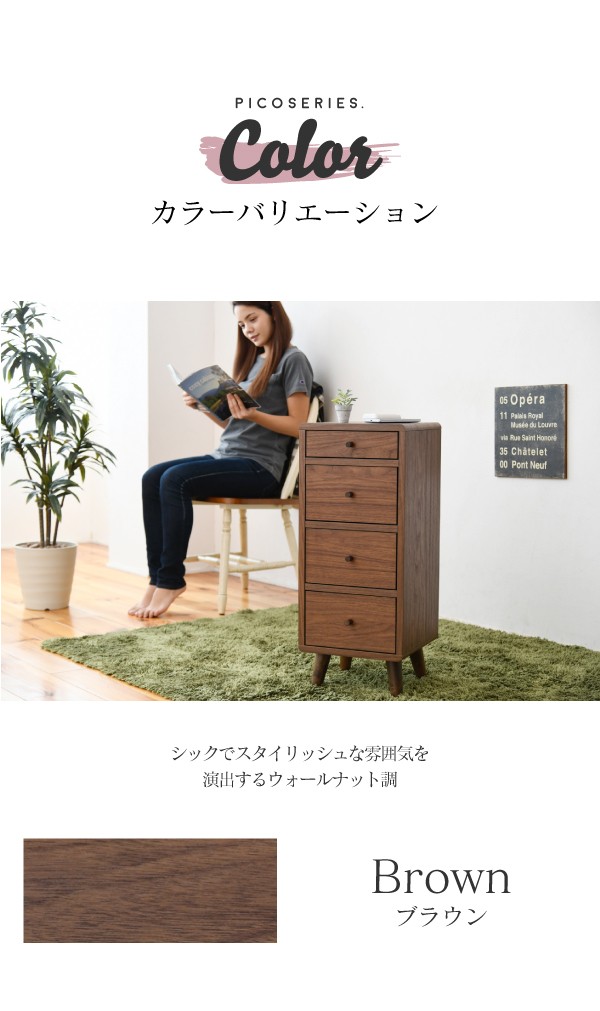[10%off] ランキング1位受賞 300円クーポン進呈 Picoシリーズ チェスト FAP-0031-BR/FAP-0031-NA スリムチェスト チェスト 4段 スリム 木製 小物入れ 収納 脚