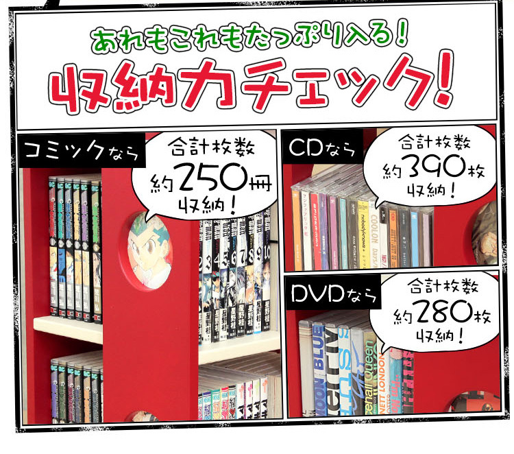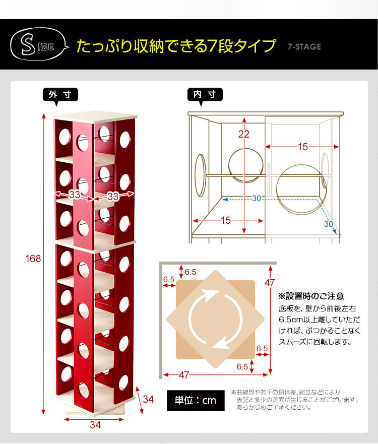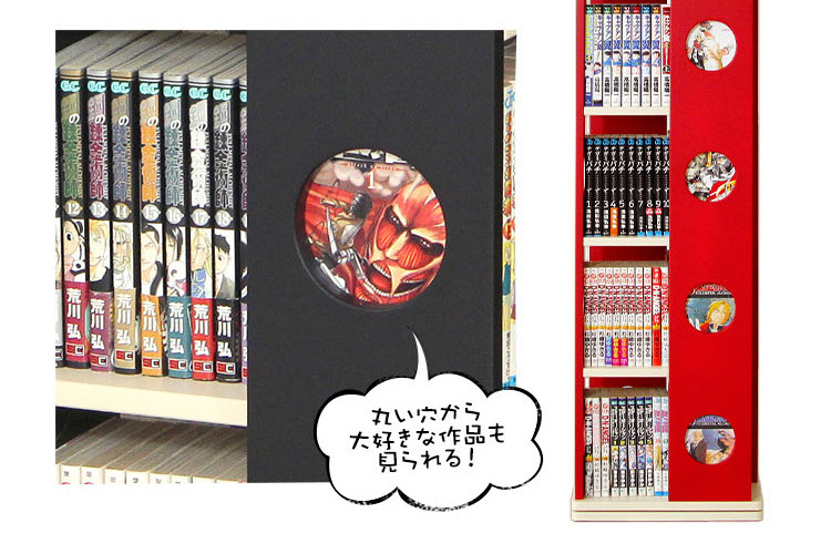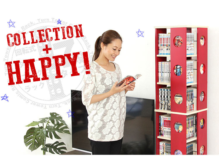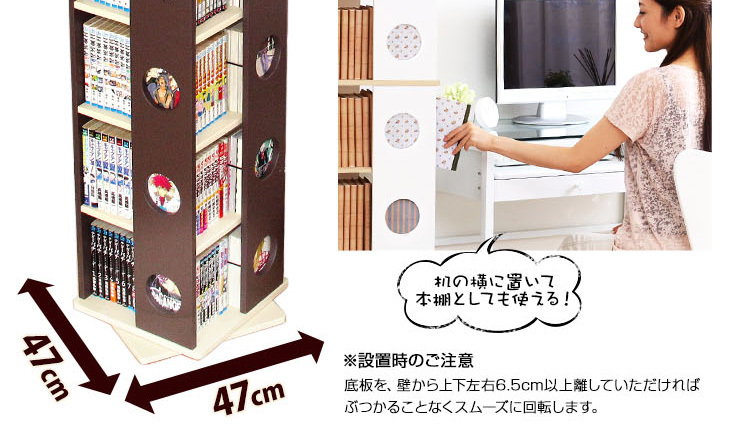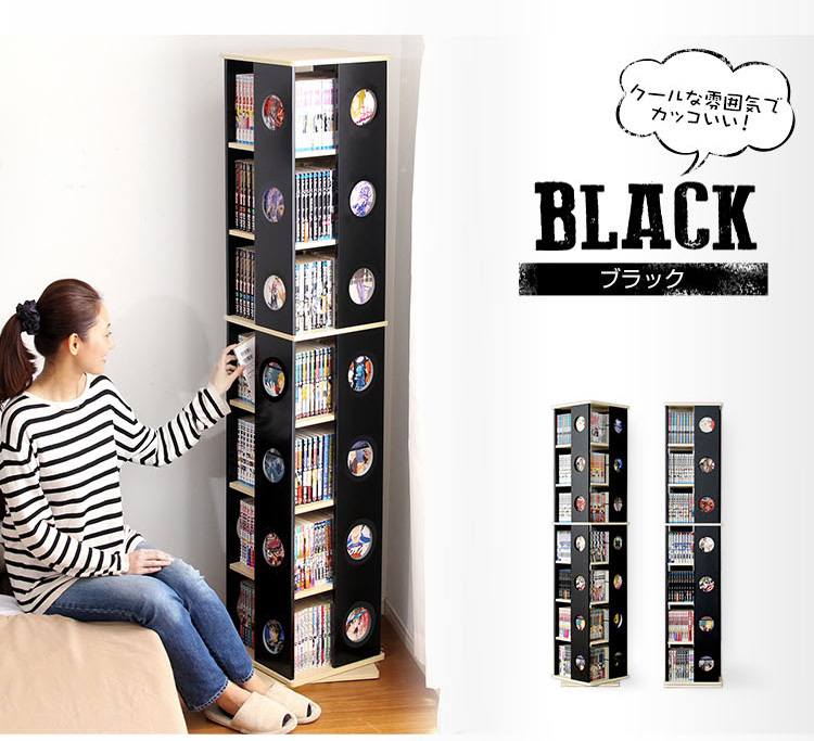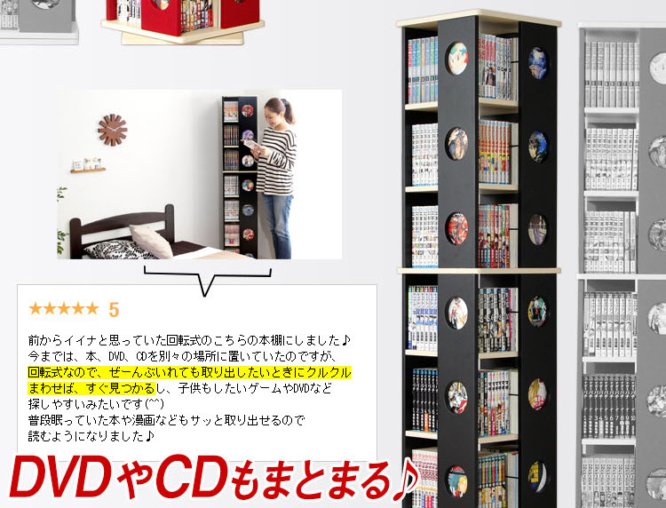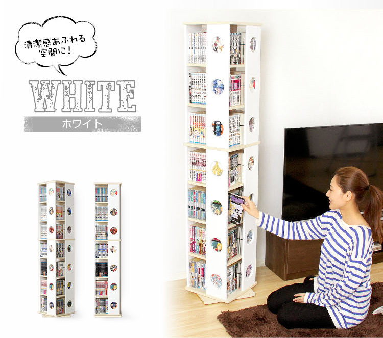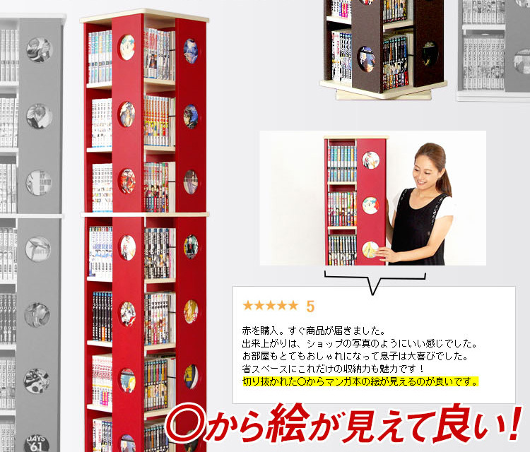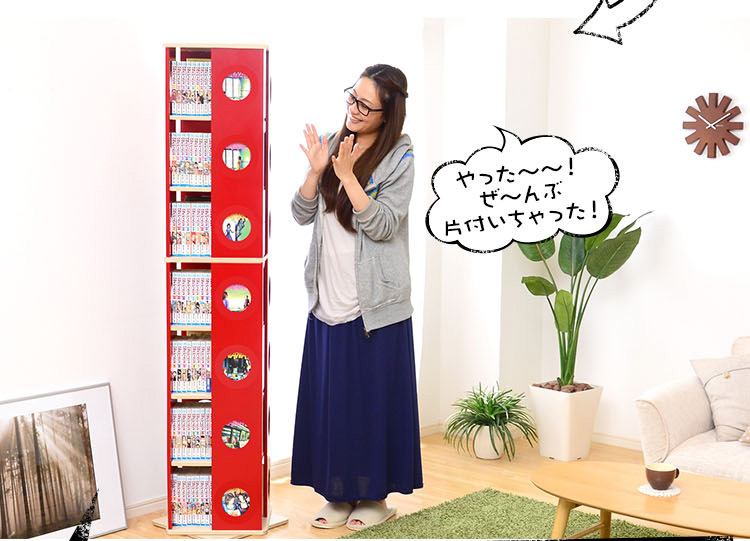 回転式の本棚!回転コミックラック(7段タイプ)【SWK-7】(本棚 回転 コミック)強度アップしたキングオブコミックラック!くるくる回る回転式なので探しやすい!機能性とデザイン性を両立!コミックだけでなく、CD・DVDや雑貨なども収納できます!カラーは選べる4色展開!【商品について】回転式の本棚!回転コミックラック(7段タイプ)【SWK-7】(本棚 回転 コミック)■サイズ:外寸:幅47x奥行47x高さ168cm内寸:(約)幅30x奥行30x高さ22cm(1フロア/4面共通)※商品重量:(約)20kg■カラー:ダークブラウン ホワイト レッド ブラック■素材:構造部材:MDF/ 表面加工:ウレタン樹脂加工■その他:・お客様組立商品です・梱包サイズ(約)97.5x41.5x12.8cm(2.6才)・梱包重量:(約)21kg※耐加重:棚板1枚につき約10kg